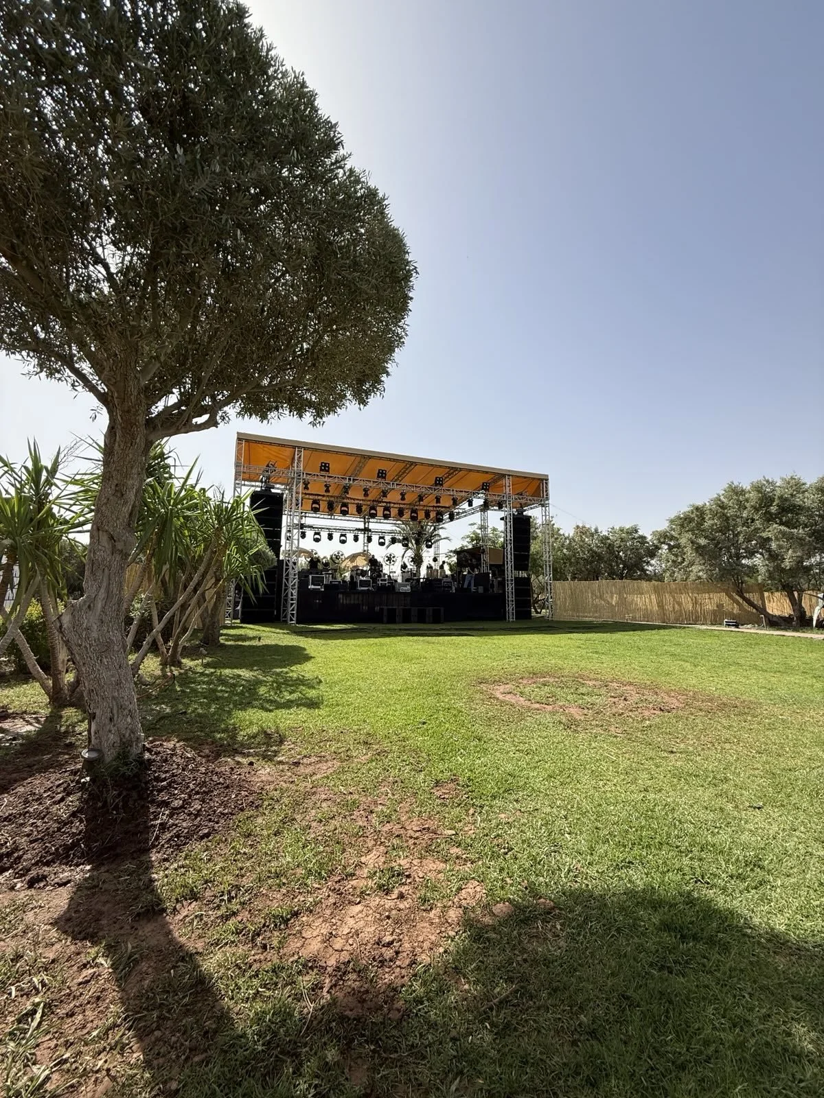 Located approximately 25 minutes from the city of Marrakech, Villa Marco is a secluded Oasis that can accommodate 1,000 people. A lush green lawn surrounded by tall trees, features an accessible pool for guests and a private pool backstage for artists, plenty of lounging space and an award-winning restaurant featuring Italian cuisine merged with local Moroccan flavors.